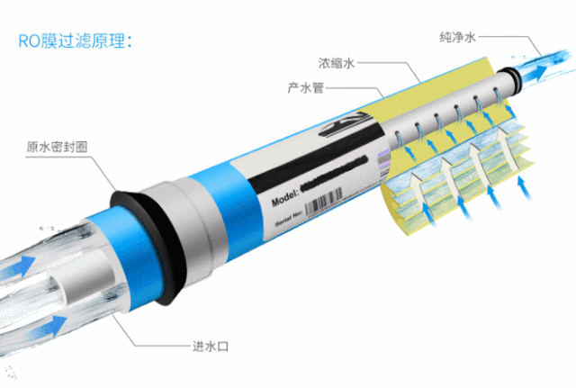 但要注意,反渗透膜使用时间久后,水中杂质、细菌等会在膜表面形成污堵,此时可采用物理及化学方进行清洗,当膜到达使用寿命后,为避免对水质造成影响,应及时更换。