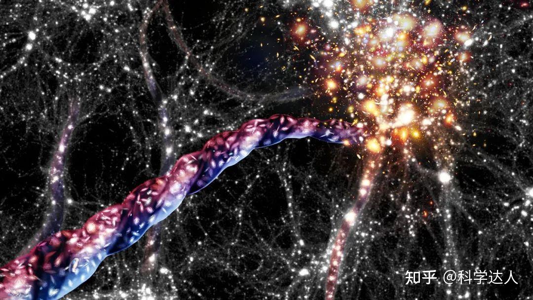 在宇宙演化的标准模型中,纤维状结构附着暗物质形成网状纤维。暗物质被认为是在大尺度上支配着宇宙的结构。暗物质通过引力吸引强子物质,强子物质是天文学家看到形成薄薄的超星系长城的“普通”物质。宇宙中星系的运动伴随着更大规模的物质流动,其形成过程通常以分层方式进行。首先,物质坍缩成薄片状结构,形成巨大的宇宙墙;然后,物质在此平面中流动以形成纤维结构;在最后阶段,物质坍塌并沿着细纤维状结构轴向流动以形成团块结构。