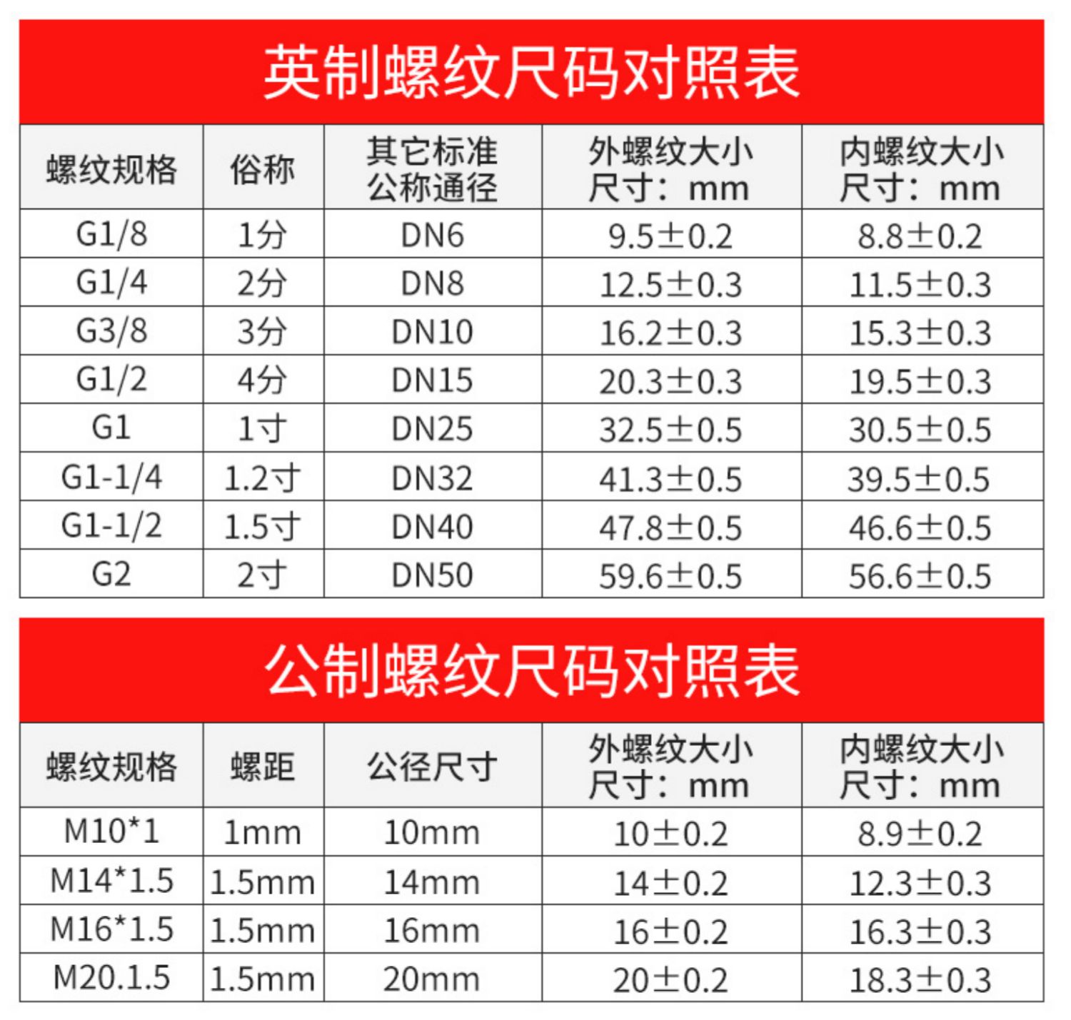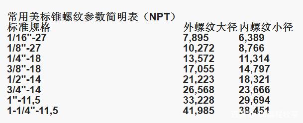 英制管螺纹 | 英制管螺纹 | 美制管螺纹 | ||||||||||