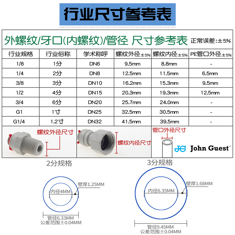 | 规格 | 标准径 | 2级牙钻孔径 | 规格 | 钻孔径 | |