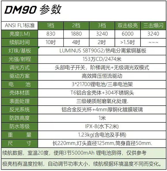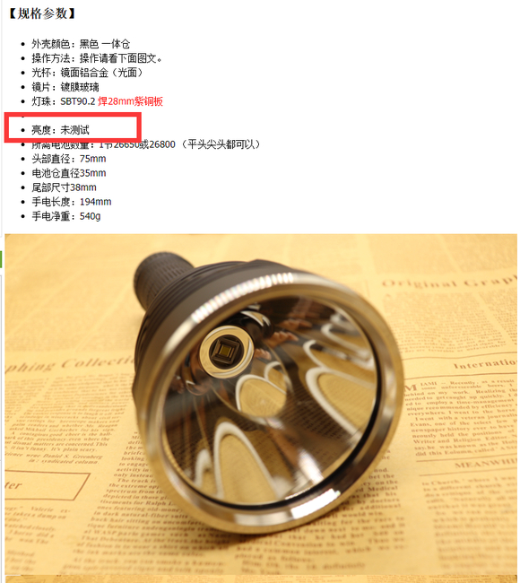 不得不统一说一下DIY圈子,有的厂家参数不齐(图1),甚至连流明数据都没有标注。而有的DIY厂家参数相对又很多(图2),虽然比不上品牌筒的20余项数据,但是在DIY领域算是给足数据了。