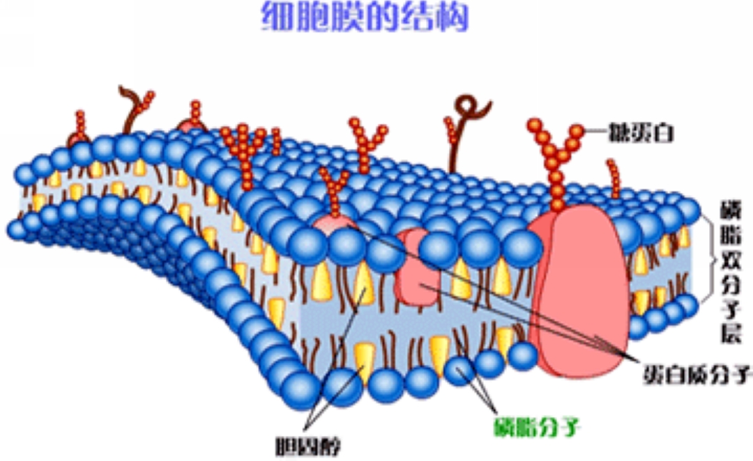 那么细胞膜是如何能够完成这些工作的呢?细胞膜是一种嵌有蛋白质和糖等大分子的磷脂分子膜。磷脂分子的亲水端向外排列,而疏水尾部向内互连构成坚实的细胞膜。磷脂分子之间的胆固醇分子可以进一步加固细胞膜的分子链接,增加膜的稳定性。镶嵌在膜上的蛋白质和糖等大分子成为有选择性地代谢物质通道。这些新陈代谢通道的具体工作情况有很多复杂的机理,通过这些工作机理细胞可以顺利地完成新陈代谢的各种物质在细胞内和外部环境之间的交换。