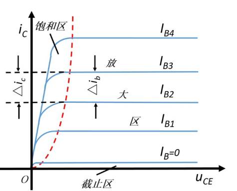 截止:当UBE < 0.7V,发射极和集电极之间没有电流通过,这时,三极管工作于截止区;