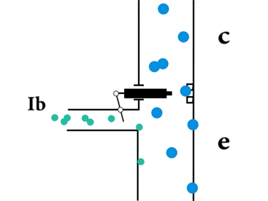 三极管是一种电流放大器件,可制成交流或直流信号放大器,由基极输入一个很小的电流从而控制集电极输出很大的电流,如下图所示: