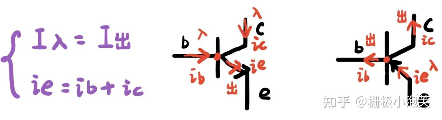 判断三极管的电流流向,就只用记住两点,ie=ib+ic;I入=I出(流入电流之和等于流出电流之和)