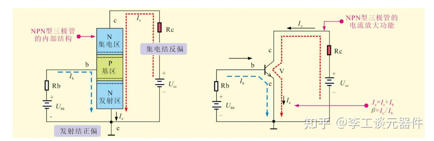(B)、集电极(C)、发射极(E),内部是由两个“PN结”构成,其中基极与发射极之间是“发射结”,基极与集电极之间是“集电结