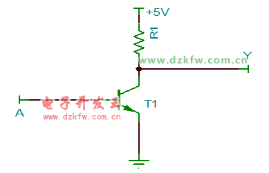 A为高电平,T1导通,Y为低电平;A为低电平,T1截止,Y为高电平。