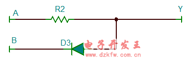 同样的,用1个电阻和1个二极管也可以组成或门。