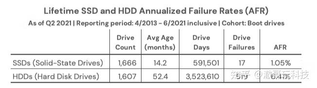 固态硬盘可能存在的另一个问题是读/写周期有限,这是NAND颗粒的写入机制决定的,都存在这个问题。而先进主控方案的作用,就是在一个固态硬盘身上的所有颗粒中,执行更加科学、均衡的写入平衡策略,让所有的颗粒单元都能被均匀写入,从而有尽量一致的寿命,而不是部分颗粒被过于频繁读写,提前到寿命。 因此,在这种情况下出现的问题是:"固态硬盘的使用寿命有多长? 通常情况下,固态硬盘的使用寿命应该长达数年,很可能远远超过你的需要,所以你不必担心或疑神疑鬼,比如使用长江存储颗粒的某些4TB的国产SSD,TBW已经达到了3000TBW以上。事实上,如果你是在最近几年购买的固态硬盘,Backblaze 的研究表明,固态硬盘的故障率比机械硬盘低,因此可以预期固态硬盘的使用寿命会更长。下图就是调研机构Backblaze以企业服务器市场中重符合服务器驱动器为样本调查的机械硬盘与固态硬盘寿命。