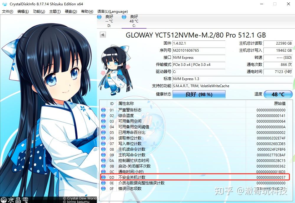 不正确地关闭系统会导致固态硬盘出错。不安全关机是硬盘监控工具跟踪的固态硬盘健康指标之一。例如,我的一块固态硬盘经历了 5 7次不安全关机,也就是 57次可能导致数据错误的关机。